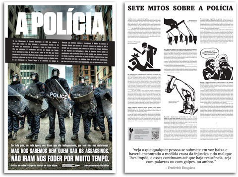 In response to the massive display of violence necessary to make the World Cup a safe zone for capitalist profiteering, our comrades in Brazil have produced a Portuguese version of our classic poster about the police. We present it here in hopes of equipping others throughout the Portuguese-speaking world to respond to the encroachments of authority. Without the servile brutality of the police, none of the social and economic inequalities of our society would be possible, nor the oppression and ecological devastation they entail. Let us delegitimize policing and stand up to police everywhere they operate.
