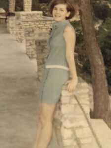 My second experience was the first date I had with the boy I would later marry. We’d gotten special permission to go…a one-time-only deal. Again, I don’t remember the movie, but I remember what I was wearing—a purple and white seersucker full skirt and sleeveless top. It was summer and even seersucker didn’t help.
