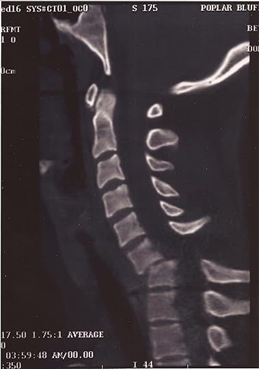 A couple weeks later, I have another surgery. This time, a plate and a cable is installed into the back of my neck. The muscles are cut and pulled away from the bone. This causes me pain later. Even though I'm still a quadriplegic, when people bump my bed, I cry. It hurts my neck. The doctor also has to cut away a piece of skin off the back of my head. It was a cut from the wreck that couldn't be touched, therefore became an infected mess.