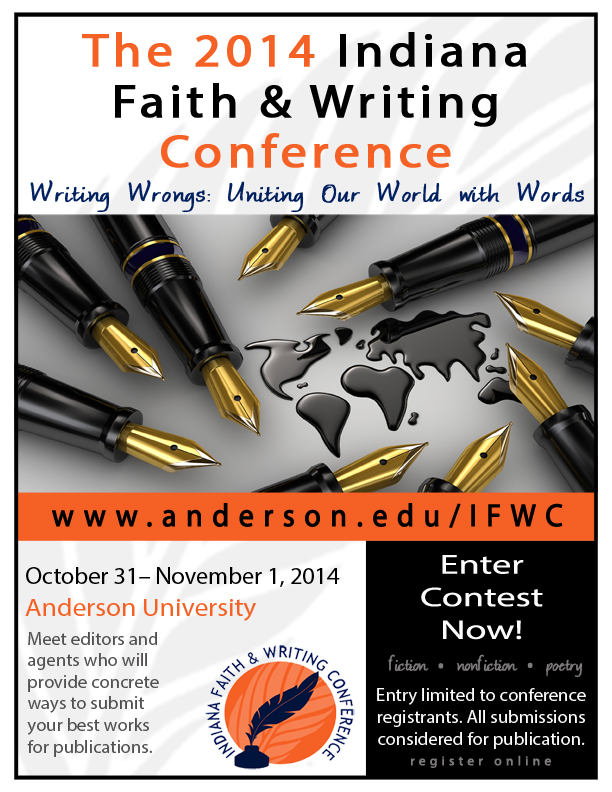 The Indiana Faith and Writing Conference will be held during the Fall 2014 semester at Anderson University, and I’m excited to be part of the faculty team!