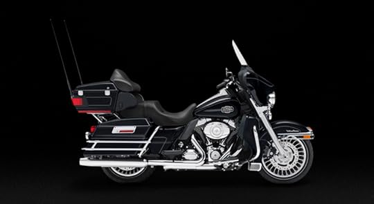Harley Davidson dot comSprite's going to sleep-away camp on Sunday, and the hubby and I are taking the new Harley for a little road trip. I hope it doesn't rain. I mean, ass-less chaps are sexy and everything, but riding in the rain definitely does sucketh.Our bike is an Ultra Classic, similar to the one at the right, but the tank and side bags are two-toned black and silver. And there's this amazing blue sparkly fleck in the black paint. It is beautiful! I'm excited to finally have a comfortable seat. Hubby's excited to have a radio/CD player.