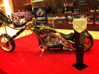 Saturday night we wandered out of Times Square and landed, ultimately, in the lobby of the Trump Building, where I took pictures of the Trump Bike, built by Paul Teutul Sr. of Orange County Choppers. Pretty damn cool.I also took pictures of the storefronts of Versaci, Prada, and Armani. Because I am a little bit strange that way. But hey, some of my characters are label queens, so it was fun.