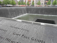 This time was a bit different. The museum isn't completed yet, and the Freedom Tower is still under construction, but the holes in the ground have been turned into these beautiful pools with waterfalls on all four sides, with the names of the people etched into the ledges surrounding the pools. The experience wasn't as painful this time - it was melancholy, but also incredibly peaceful. I think the memorial pools are a very fitting tribute to the many lives lost, both on 9/11, and also the terrorist attack on the WTC in 1993.