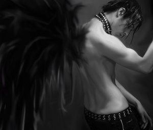 The series starts with A Rush of Wings, and the first time we meet Dante, it's during a blood-drinking/sex sharing threesome between Dante, Jay, and Gina, and that part was over way to soon. (grin - yeah, I'm naughty that way).Phoenix describes Dante like this: "Slender, hard body, five nine or five ten, moving with dangerous and unself-conscious grace, all coiled muscles and knife-sharp reflexes - Tousled black hair spilling past his shoulders, dressed in mesh and leather and steel-ringed bondage collar, a sexuality that scorched -"