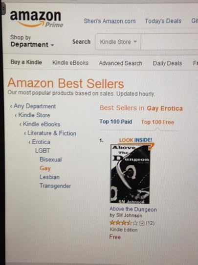 My M/M erotica novel, Above the Dungeon, is currently hanging out in the NUMBER 1 slot in category kindle free fiction.Category being something like, free-kindle-ebooks-fiction and literature-GLBT-GAY... yanno, a very specific and probably small category. But My. Book. #1.