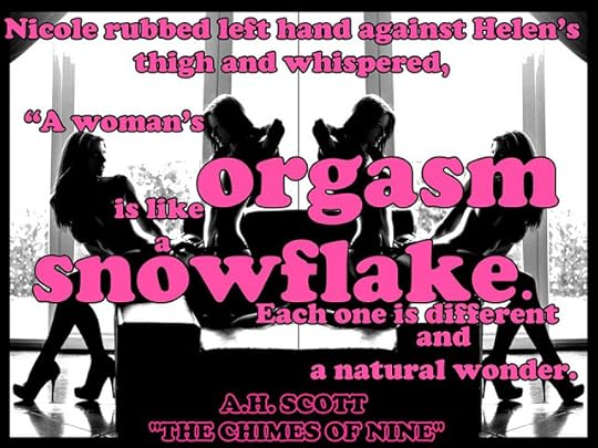Nicole rubbed left hand against Helen’s thigh and whispered, “A woman’s orgasm is like a snowflake. Each one is different and a natural wonder..”