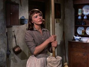 That’s Sean Connery, a few years before Bond, and a perfect catch for Katie O’Gill (cutie Janet Munro, Bertie from Swiss Family Robinson, who died far too young). She’s a bit fiery and distant until she catches him singing while swinging the scythe with his manly arms. It’s almost unfortunate that this is a Disney movie, because Connery looks like he’s barely able to contain his devilish demeanor. With his expressive eyebrows and grin, we expect a shotgun wedding any moment, but he’s a perfect gentleman.