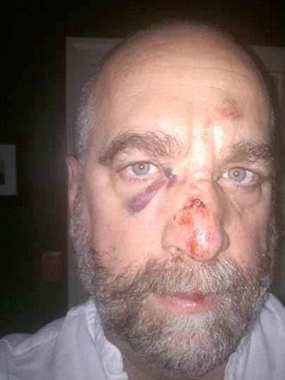 Three. And I’m hoping to give up the habit. First time was playing sandlot ball as a kid. Nobody remembered to bring a catcher’s mask, but I figured what the hell, I’d played catcher plenty of times, couldn’t remember ever taking one square on the mask. That ended predictably. Then there was my abortive boxing career, something I messed around with in my callow youth. I was in the Joe Frazier, destroy-the-body-and-the-head-will-fall school, so I ate a lot of jabs with my beak trying to get inside. Made the mistake of eating a hook instead. The picture you saw was from the famous squirrel incident. Out riding my bike and a suicidal squirrel jumped right into my front tire at point-blank range. I broke my fall with my face, which was just as well. No point messing up any of my better features. Actually, the first couple busted noses left my schnoz a tad off center. This last one seems to have straightened it out a bit. So this would be an excellent time to quit.