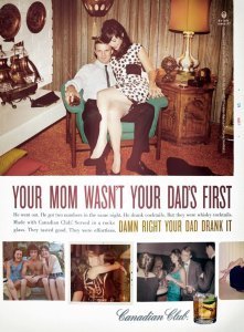 Part of me is chafing at these ad campaigns for old booze because they attempt to make men of my age feel somewhat lacking in manhood, compared to our fathers. Not to disparage a generation, or paint all Ever since Hemingway, we’ve decided that Manhood means shooting wild animals, climbing mountains, and drinking copious amounts of hard liquor (which is especially amusing, since Hemingway popularized the daiquiri). The Canadian Club ads state “Damn right your Dad drank it,” playing into the bullshit that it is somehow difficult or less enjoyable to be a man these days.