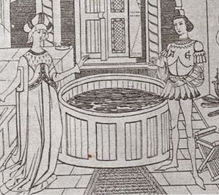 Bathing was certainly a generally accepted necessity and quite luxurious baths were known to exist in all great houses. Wooden and barrel shaped for the most part, they could be linen lined and cushioned
