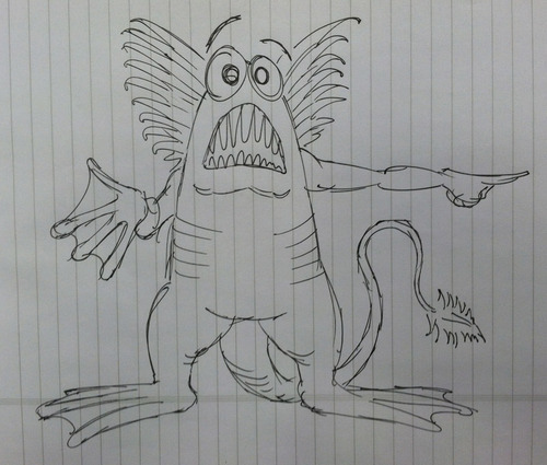 I drew a sad monster, but it made Caroline Hooton too sad, so I...