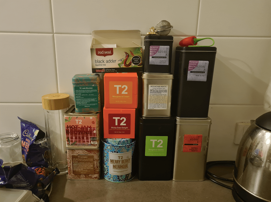 Sad news, this means I had to pack up all my tea to be moved. Ha. I’ve kept out ONLY MY EMERGENCY TEA SUPPLIES please observe: