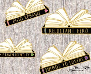 The Black Kookaburra (BK) has a whole range of pin plans in the works, but the first official set will be these gorgeous book trope pins: