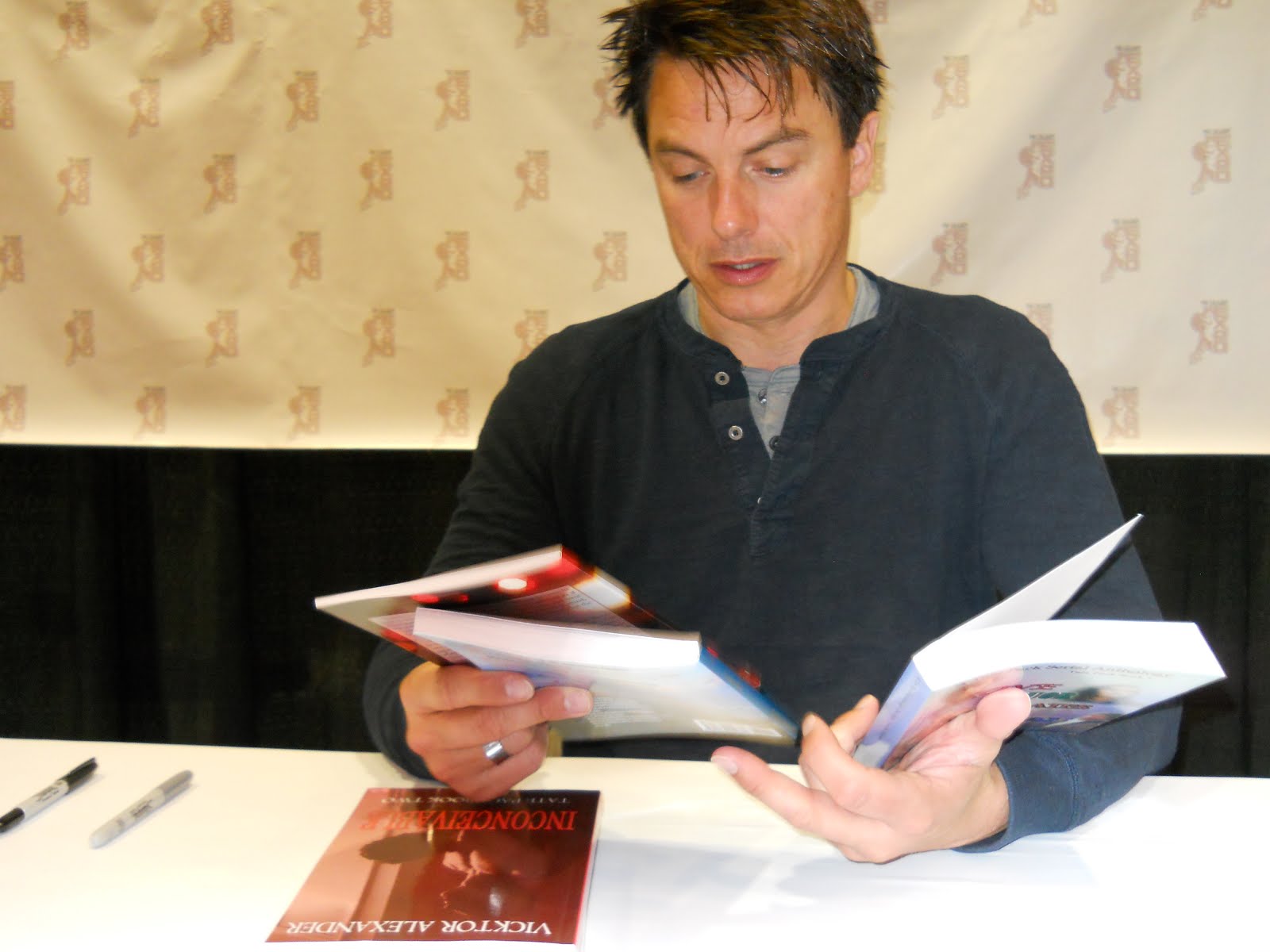 I had a reader take my books to the Calgary Expo in Canada and because I couldn't be there and I heard that the amazing actors of "Torchwood" (by Russell T. Davies): John Barrowman, Gareth David-Lloyd, and Eve Myles were going to be there, I asked for her to take some of my books to them. I gave them to them as a gift, hoping that maybe they would at least touch them and see my name (and you know, one day, in my dreams, John, Gareth and I will make an "Uh-Oh Oreo". LOL). Pat, the friend and reader who took the pics, went above and beyond and got pictures of them as well.