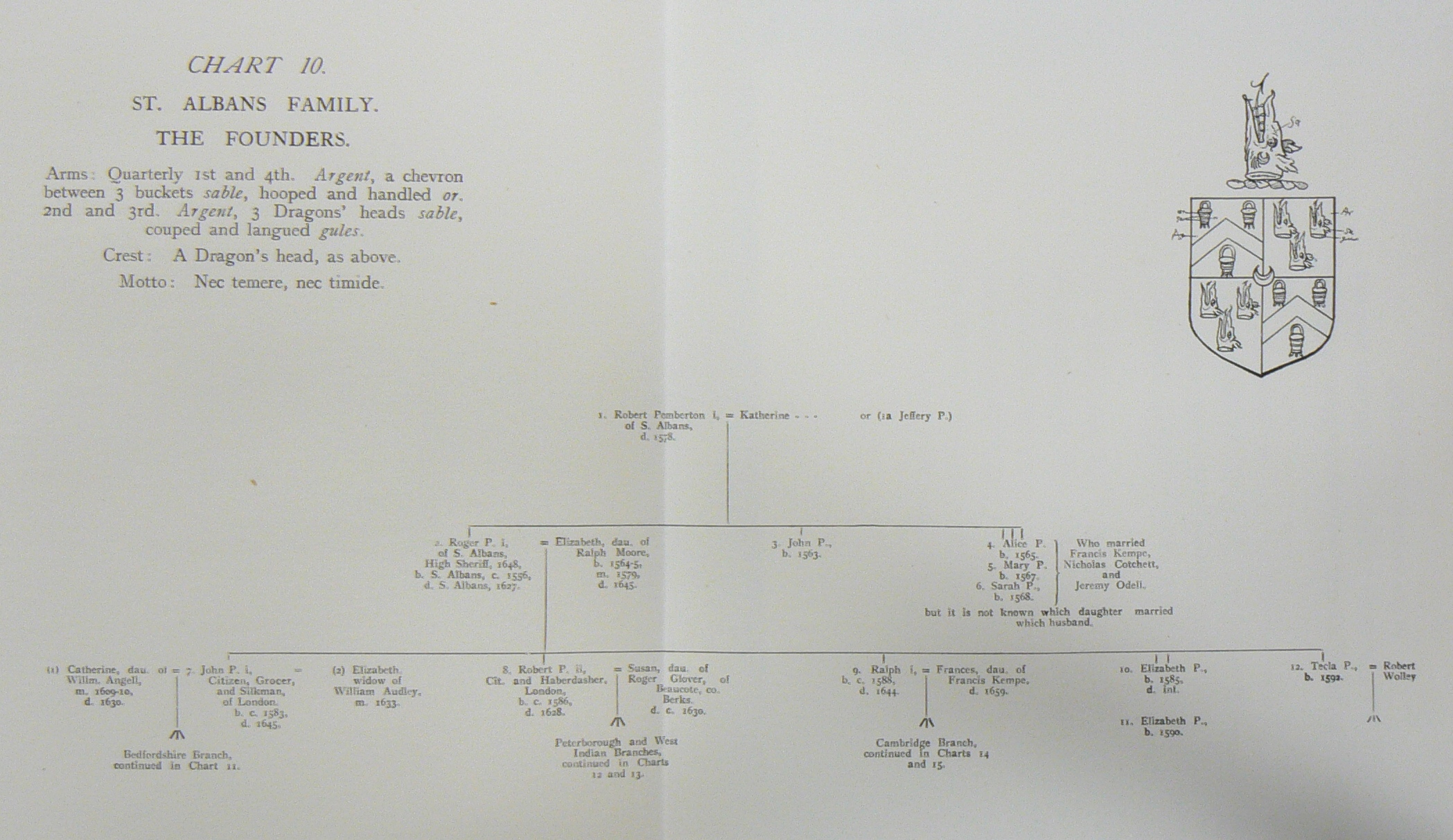 The charts were compiled by Major-General Robert Charles Boileau Pemberton. The book was an impressive piece of work for a time when there was no internet (and therefore no online genealogical databases) and few telephones. He gathered much of the information by visiting the families concerned. He died in 1914 before he could publish, and one of his sons, Reverend Robert Pemberton, published the first 40 charts in 1923. He intended to publish more, along with biographical information, but never did. If anyone knows the whereabouts of the remaining material, the researchers would be delighted to hear from them.