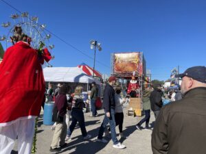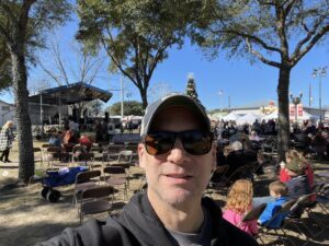 Today MBW and the HA and I drove north to Tomball, Texas to spend a few hours wandering about the Tomball German Christmas Market. The town of Tomball celebrates Texas’ German roots and the Christmas season. There were food and drink booths galore, various vendors, wandering street performers, a carnival, multiple venues for live music, and more. MBW and the HA went Mexican for food, choosing churros and street corn. I tried to stay thematic with a bratwurst and sauerkraut. Also, beer, a German dunkel to be precise. And, also on theme, I purchased a Christmas present for MBW. I’m afraid there will be no surprise factor, but at least I know that when she unwraps it she’ll be happy with the gift.