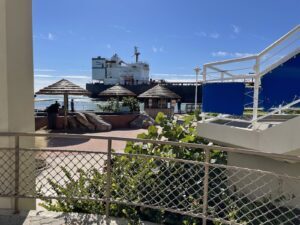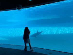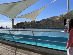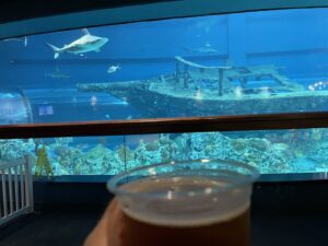 Friday we spent the bulk of the day at the Texas State Aquarium. The HA is an aficionado of fish zoos. The dolphin show was fun. More interesting was going below and watching the trainers work the big gray squeaky toys through their paces. This is the first aquarium I’ve been to that served beer. I took advantage of that amenity and chilled out watching the sharks circle.