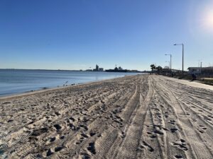 Saturday we visited the Corpus Christi Museum of Science and History. Again the HA had a good time. As these things go, the Corpus Christi version is a modest example. But the 16th Century shipwrecks and the Western collections are standouts. We followed that visit with a late lunch at Railroad Seafood Station & Brewing Co. We enjoyed the food. I enjoyed half the taster. The floral take on a Mexican style cerveza was novel and pretty good. The pomegranate sour wasn’t bad. The IPAs? Well, Rome wasn’t built in a day. (And what was I thinking, agreeing to try a Peanut Butter IPA? One can push this willingness to try new things too far.) We ended the day on the beach. Not too shabby.