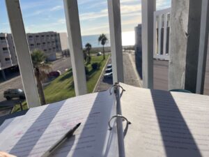 I loaded MBW and the HA into the car Thursday morning and headed south to Corpus Christi on a gloriously bright morning. Similarly bright mornings and days have persisted, though the mornings can be a trifle chilly. I may be adjusting to Texas; a year ago I wouldn’t have considered these temperatures worth the trouble of anything more than short sleeves.