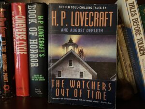 H.P. Lovecraft receives top billing for The Watchers Out of Time. But the stories in this collection appear to have been actually written by Lovecraft’s acolyte, August Derleth. He seems to have used notes of Lovecraft’s as the springboard for the fifteen (fourteen and a half, rather, since Derleth died before completing the titular tale) stories in the collection.