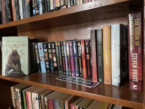 But the immediately preceding paragraph is largely quibbling. The essential determinant of a book’s value is whether or not I enjoyed it. And, happily, I did. Once again Brust’s smart ass first person narration entertains, carrying the reader past slow points and masking the general triviality and lightweight nature of the plot. Tsalmoth may be a place holder, a book written because the Tsalmoth is one of the creatures in the Dragaeran cycle and so there must be a book with that title to complete the series. Appropriately circular reasoning. If you are a fan of the series you will want this one. It may be lesser Vlad Taltos, but it is still Vlad Taltos.