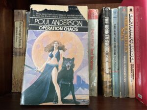 Today, however, I thought I’d recommend an alternative Halloween read, something you might consider S&S adjacent: Poul Anderson’s Operation Chaos. The book is a fix-up novel, combining four stories Anderson wrote in the 1950s and 60s. It offers all the mental Halloween candy you need: werewolves and witches; monsters and devils from across the spectrum from Universal films to 1001 Arabian Nights. This is high concept fantasy, but Anderson — like de Camp and Pratt did with the Harold Shea stories and Niven did later with The Magic Goes Away — felt a compulsion to systematize his magic and fantastical concepts, fitting them into a self-consistent order. Thus Operation Chaos carries with it an oddly appealing overtone of science-fiction.