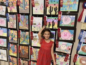 The HA���s school had part of the wall in an exhibit hall for artwork. The father of one of her classmates sponsors a barbeque team. So we had a couple of reasons to attend other than just getting footsore, hot, and spending too much money on minor amusements. It was fun, though. And fairs are woven into the fabric of American life. That weave extends to fiction.