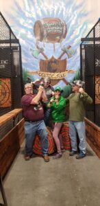 MBW and I dropped off the HA with her godmother for a few hours. Then we joined a couple friends for some range time. MBW is improving, though I suspect she regrets having elected to purchase a 9mm over a .380. I sense a new purchase in the offing sometime in next few months. After some expensive recreation, we repaired to a brewpub for pizza, beverages, and ax throwing. (Stickmen Brewing, I recommend the F-Bomb.) I emerged crowned as the hatchet-hurling champion, though by the skin of my teeth. And now I’ll bore you with pictures.
