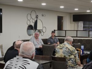 We reached Lebanon, TN the next afternoon in time for the con to begin. ConFinement is Mad Mike Williamson’s baby, now in its sixth year. It is a small gathering, with almost all the panels occurring in the same space, one after another. There is a small vendor’s room, and a hospitality suite. (I contributed a bottle of Tullamore DEW which did not survive the first night.)