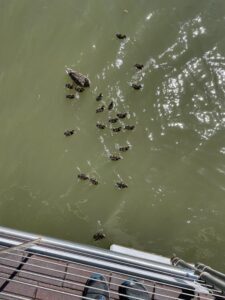 After lunch, we drove out to visit the dam and fish ladders. Closed. Sigh. At least we got to enjoy the east-of-the-Cascades sun, as well as the justly famous Gorge wind. Somehow I did not lose my hat.