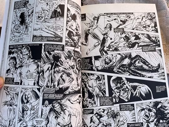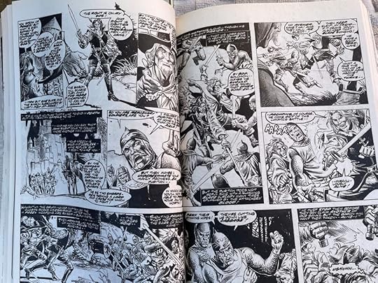 While most of us are familiar with the black and white Conan comic Savage Sword of Conan, perhaps not all are aware that the magazine also included Solomon Kane stories. A role call of great illustrators penciled and inked the Conan stories: John Buscema, Gil Kane, Barry Windsor Smith, Alfredo Alcala, Ernie Chan, etc. Terrific stuff.