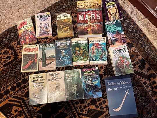 Abraham Merritt. (I wanted to type A. Merritt, but my computer, which thinks it knows better than I do what I intend to write, keeps tabbing over every time I write it and I don’t feel like figuring out the formatting issue.) Merritt gets multiple titles and an et al. Oddly, Ship of Ishtar isn’t one of them but perhaps gets in under et al. Moon Pool raises the Lost World issue again. But in this case, I’d say the evidence weighs against it’s admission as S&S. Dwellers in the Mirage, however, I’d say qualifies.