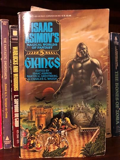 It really shouldn’t come as a pleasant surprise to open a book and find exactly what the title describes. But, such is my life. I picked up Isaac Asimov’s Magical Worlds of Fantasy 5: Giants based on the strength of the names Manly Wade Wellman and Clark Ashton Smith. Seeing David Drake’s name in the credits didn’t hurt. I had a pretty good idea, given the inclusion of Pohl, Asimov, and Knight — among others — that this would not be a purely S&S/Weird Tales affair. But I expected mostly strong stories, be they science fiction, fantasy, or some hybrid thereof.