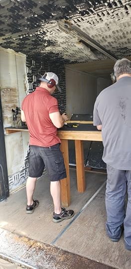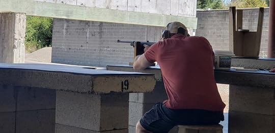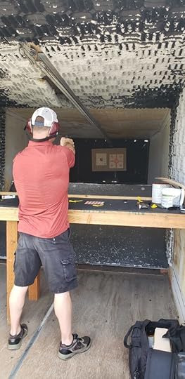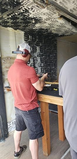 Experience, of course, can dim. So why not brush up from time to time? I went with MBW and some friends to a gun club. MBW was eager to break in a new purchase. I was eager to refresh the scents, the sounds, and the feel of hurling lead down range and hoping it hits somewhere near where I intend. Since I have a major action scene coming up in my work in progress (a sequel to a series which I will discuss in more depth next week) the timing was fortuitous.