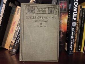 I was visiting friends and family in Oregon a few moths back. In an antique store I picked up a volume (copyright 1903) of selections from Alfred Lord Tennyson’s Idylls of the King. I do not pretend to possess the qualifications or aptitude to critique poetry, nor even the interest in developing the qualifications or aptitude. But I do enjoy revisiting the Arthurian Legends in their multitudinous variations and incarnations. And Idylls of the King is one of the major incarnations.