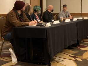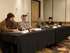 I am writing this post from Orycon 44, in Portland, Oregon. The convention was kind enough to issue me yet another invitation to blather on panels. Of note was the Saturday panel, Sword-and-Sorcery 101, at which I shamelessly cribbed from Brian Murphy’s Flame and Crimson. I also sold several books. Speaking of which, herein follows the obligatory self-promotion. (We all have bills to pay.) Aethon Books has undertaken the effort and expense of publishing all four volumes of Semi-Autos and Sorcery. Now the series is also available in collected format, as both digital and audio books. Get yours today.��