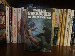 Tarzan and John Carter are deservedly famous. But I have extracted a perhaps unexpected amount of enjoyment from several of Edgar Rice Burrough’s less well known books, such as The Mucker, I Am A Barbarian, The Outlaw of Torn, and The Mad King. Now add to that The Land of Hidden Men.