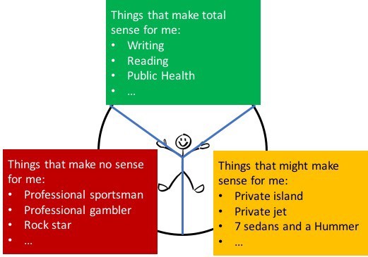 I believe there's a sphere of possibilities for everyone as to where they might end up in five (or ten) years. All that is needed is to start narrowing that down. Start with an elimination oriented approach to arrive at an increasingly smaller sliver of a life that you'd want for an older you.