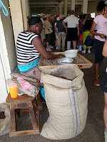 Sorting Nutmeg for ExportIn the evening we boarded our ship with packages of nutmeg, mace and chocolate nibs - souvenirs of the Spice Island. While we danced to a steel band I nibbled the nibs - and went off on a high that lasted the entire night - who knew they were so powerful. The concert over, we departed on the way to Guyana.The best (well, the most interesting) was yet to come. Stay tuned!