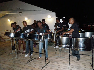 All very nice but our attraction was the next three stops. First came Grenada, famous for Reagan's invasion in 1983 to overthrow the People's Revolutionary Army who were conducting a reign of terror. We always considered the invasion somewhat of a joke but everyone we spoke about the island's history of changing hands between French and English rule followed by a rocky road to independence was grateful that tyrants were overthrown. Our guide was a man (I think) of Indian background. He was willowy and flashed his beautiful long red-lacquered nails as he drove us around the island. His companion was a genial rasta wearing Ethiopian jewelry and a green, yellow and red knit cap over his dreadlocks. He told us what a wonderful man Haile Selassie had been (His remarks didn't comport with what I had seen in Addis but then to each his own.). We saw a lot of lush vegetation and luxury resorts but a hurricane in 2004 wiped out most of the nutmeg trees and the economic downturn has devastated the tourism industry, the only real sources of income on what should by an idyllic island.