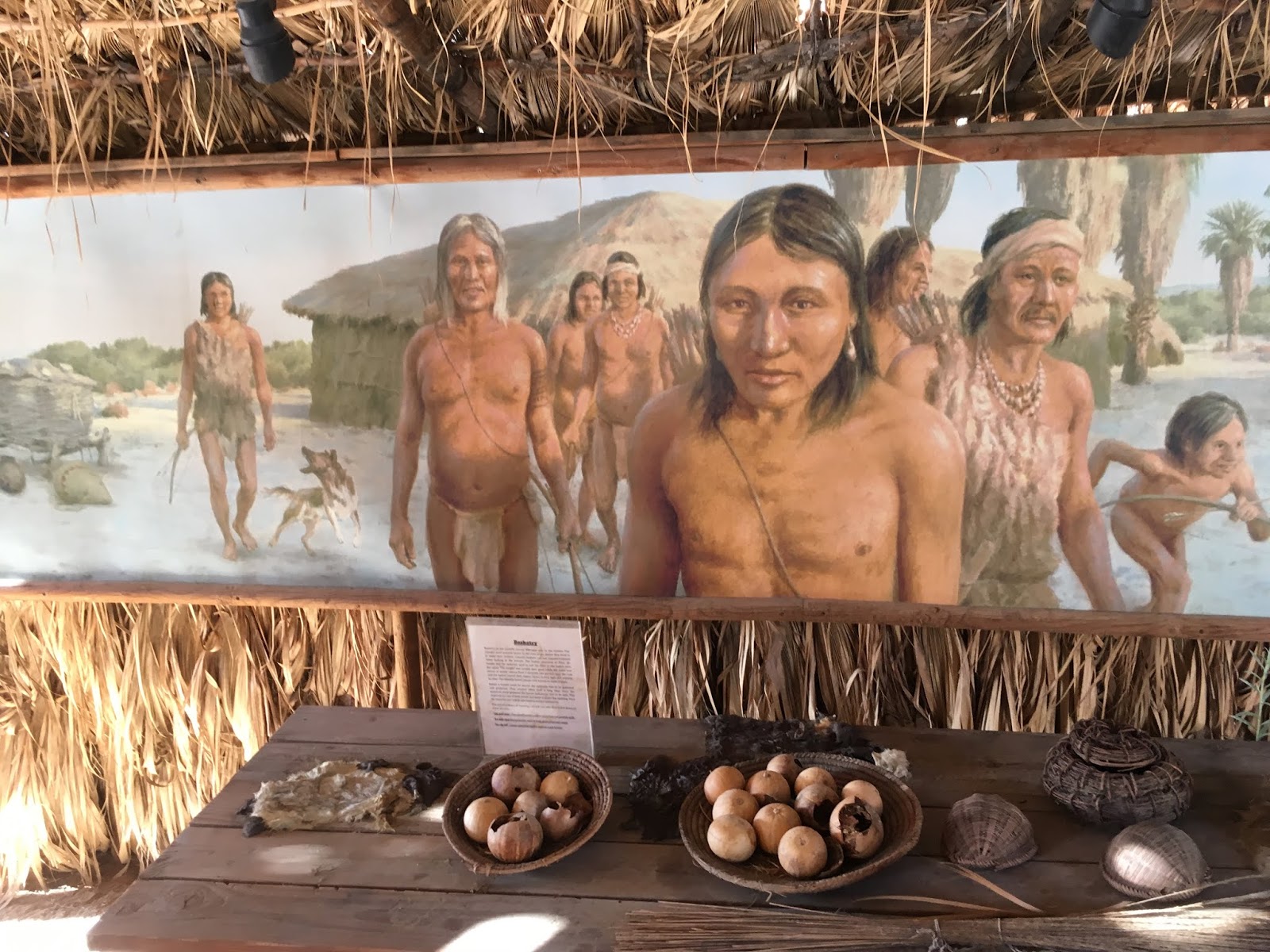 Their diet was more varied than I'd assumed and also included pine nuts, mesquite beans, seeds and small animals such as rabbits and lizards, along with the fruit of theCalifornia Fan Palm. Native to the area, this palm doesn’t actually produce dates. Instead, it bears elliptical black "berries" about 1/2 inch in diameter. These berries have a very large, brown seed surrounded by a thin, sweet pulp. The tree was all-purpose to natives who ate the fruit fresh or dried, ground the pits into flour and wove the fronds into baskets and roofing.