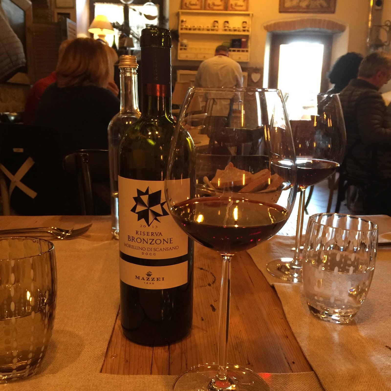 Our eyes filled and time passing, we were ready for another type of feast – a late lunch at La Loggetta. The menu wasn’t extensive but everything was so tempting it was difficult to make a choice. I finally settled on country-style prosciutto with melon followed by gnocchetti with shaved white truffles. Hubby went for fettuccine with fungi porcini and our friend enjoyed pappardelle with hare. Our wine was a Morellino di Scansano, a favorite red with its hint of ripe blackberries. We were reluctant to leave but none of us could eat a main course.
