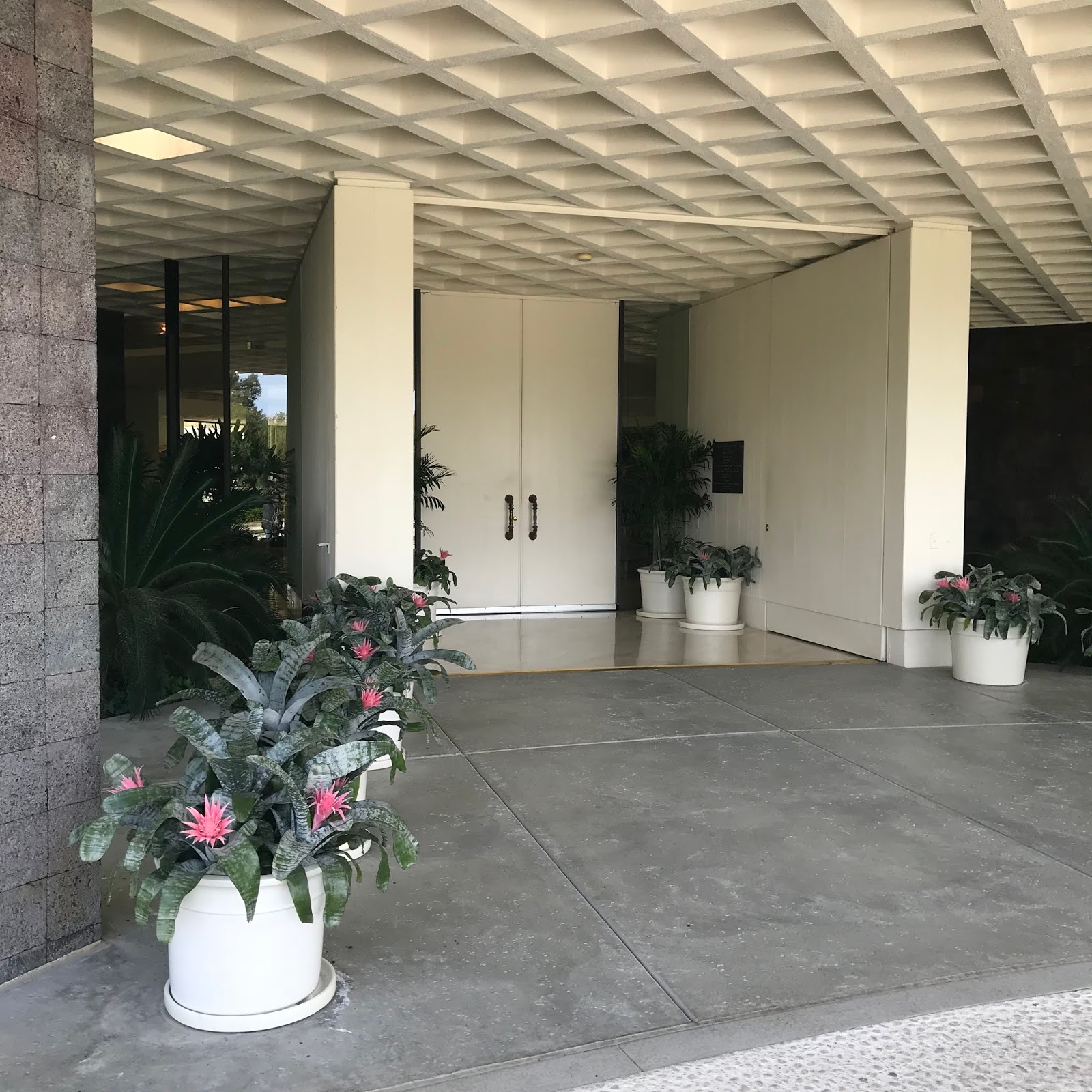 Annenberg was an enormously wealthy philanthropist who was Ronald Reagan’s Ambassador to the U.K. He knew every politician from the 1930s on and the room containing his memorabilia is worth a long look. He envisioned the 25,000 square-foot house would be used as a place where solution-driven meetings could take place, and to that end the architect A. Quincy Jones (not the musician) designed a mid-Century modern mansion with its stark lines and egg-crate overhang greeting us at the home's entrance.