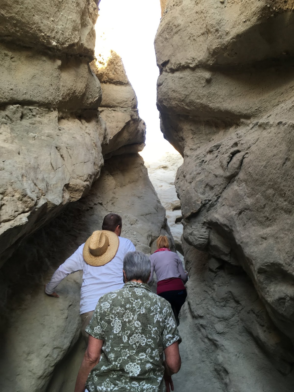 The infamous fault runs about 800 miles from northern California to the Mexican border. It’s formed where the Pacific Plate and North American Place continually scrape together as one moves in a southerly direction and the other toward the north, resulting in earthquakes—many small and some deadly large. The jeep tour was on the Metate Ranch where if you expected to see a gigantic crevasse, you’d be disappointed. But the ground is rough and rocky with narrow slot canyons created uplift from the movement of the Plates and carved over the eons by wind and water.