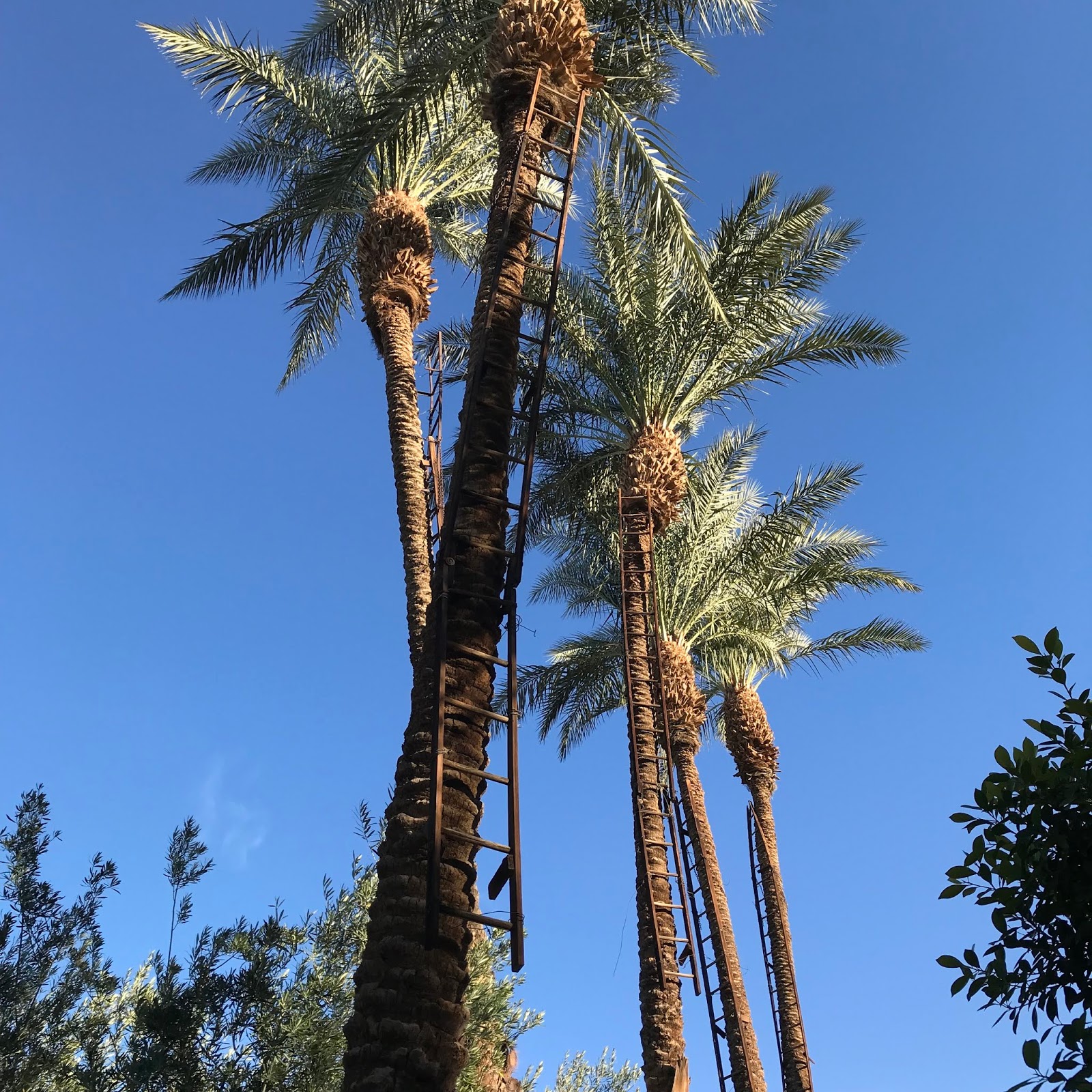 Palm trees always conjure days of sun and relaxation as the fronds rustle in the breeze, so it was a pleasure to amble along the path winding around the grove of towering palms with ladders hung high up, stored until the next pollination or harvest season.