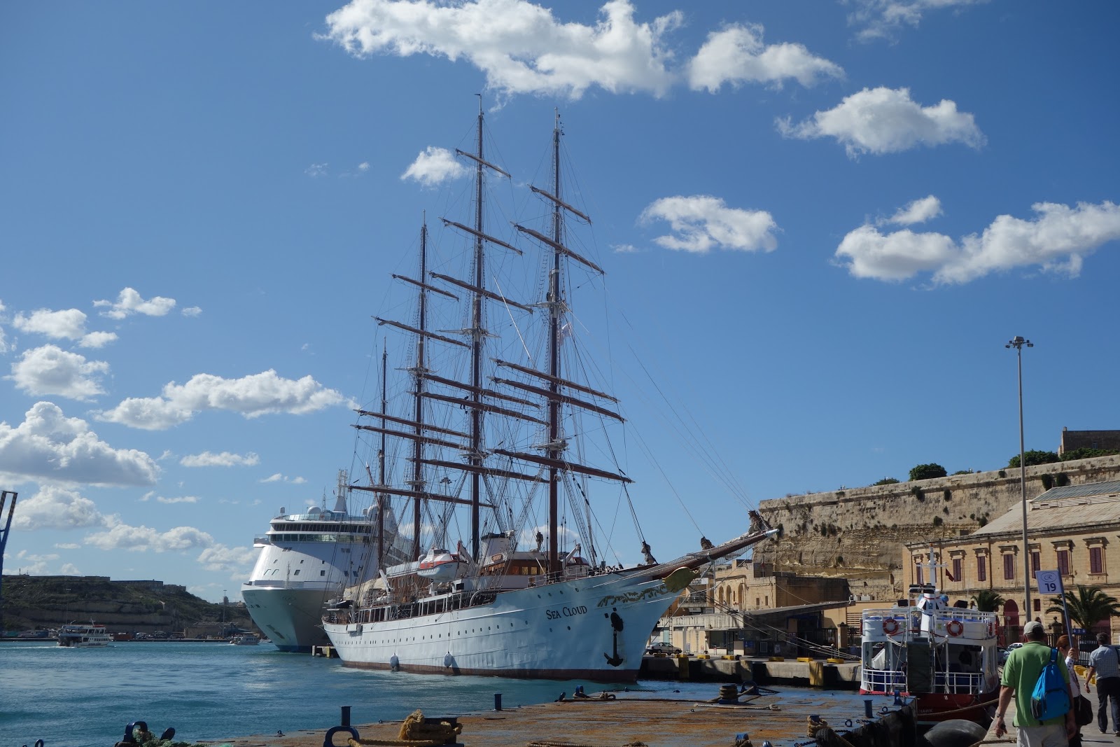 We finished our day with a stroll along the waterfront below Valletta and stopped to admire the beautiful sailing ship The Sea Cloud. It was once owned by Margorie Merriweather Post, who founded General Mills, wore jewelry owned by Marie Antoinette, and vacationed at her estate in Florida: Mar-a-Lago of current fame. The ship is now used for cruises for those fortunate enough to have the time and money to enjoy it.