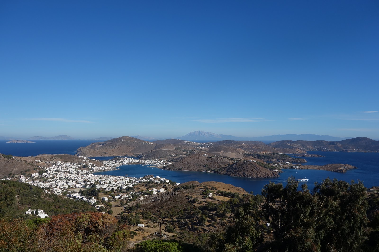 Our small ship had approached what appeared to be a white and gold mound suspended in blue an hour earlier. It was the small island of Patmos with drought-yellow vegetation and Greek-white buildings resting between impossibly Mediterranean blue sky and sapphire sea.
