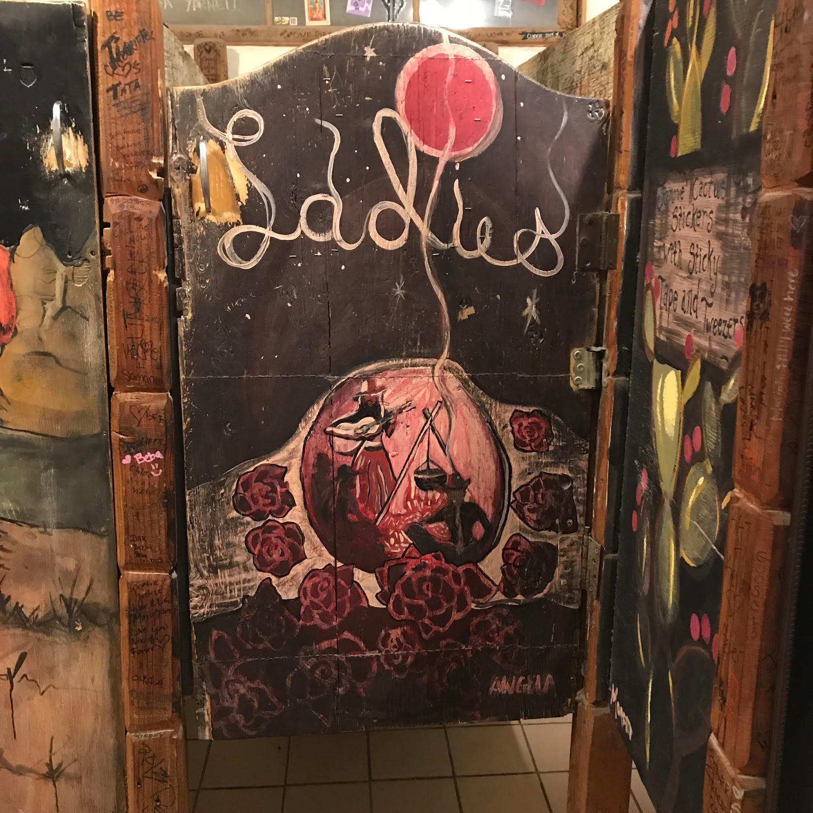 Inside, the stage was set up but it was much too early for music but the quirky décor extended to the women’s restroom.