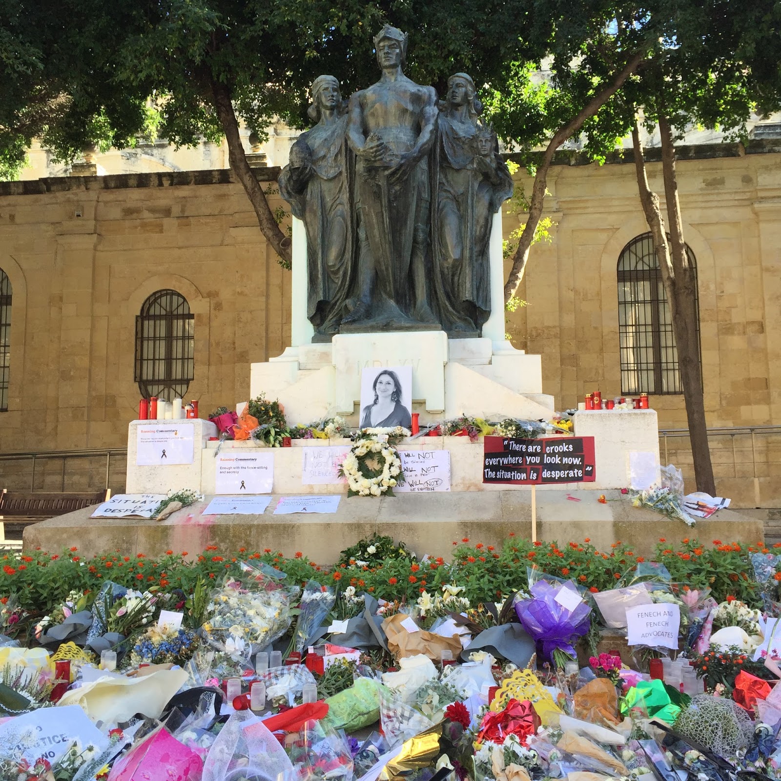 The steps of the church were covered in flowers in memory of an investigative journalist recently assassinated for her writings about alleged government corruption. But once inside the cathedral our minds were swept back in time, overwhelmed by what seems to be acres of gold leaf and paintings celebrating the glories of the Church in high Baroque style. But as on every visit, my eye is drawn to the macabre inlaid marble floors which cover Knight’s tombs, many of whom are depicted as skeletons.