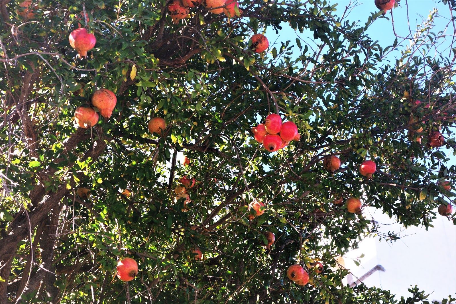 Still contemplating the religious aspects of the island we found our way down to the tiny port following lanes lined with more shops, white houses with pots of purple Greek basil on doorsteps, laden pomegranate trees, and views of the sea around every turn.